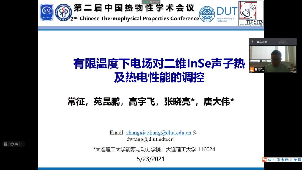 1. 常征博士报告题目为《有限温度下电场对二维InSe声子热及热电性能的调控》;