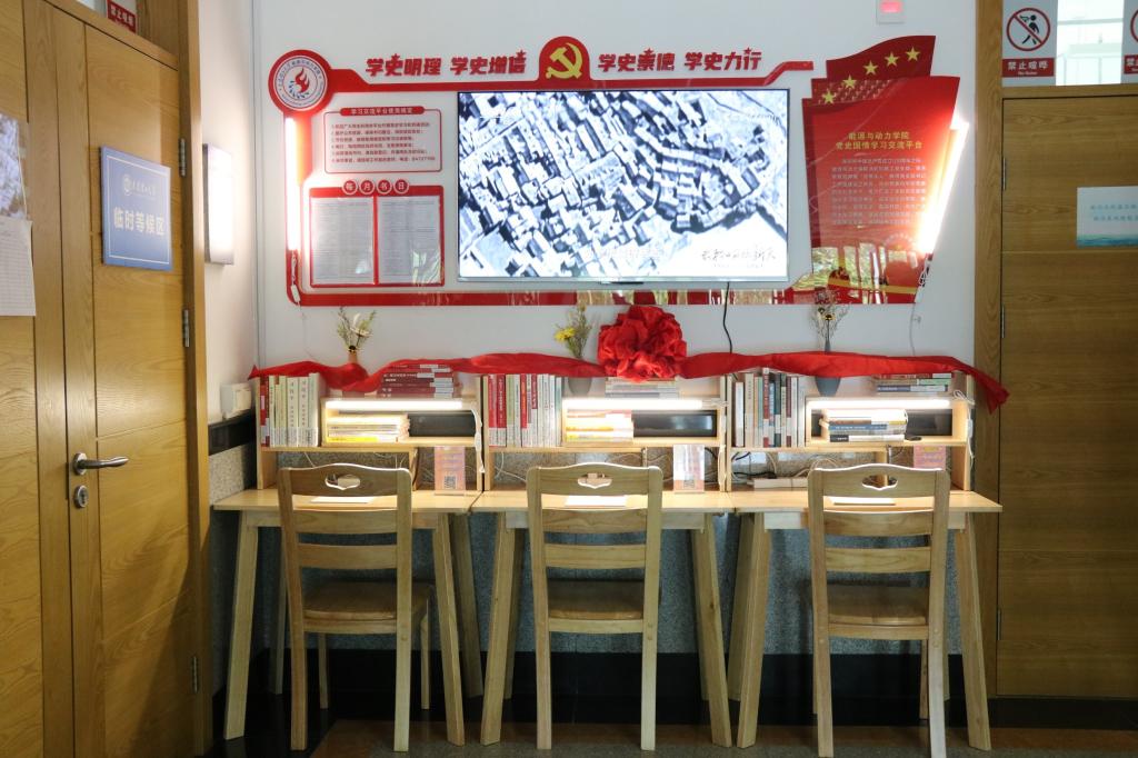 涡轮机教工党支部书记吕东主持了学习园地的开园仪式,并向学院党委书记杨明军和副书记陈家模详细汇报了园地的建设过程。杨书记亲自为园地进行了落成剪彩,并鼓励与会的各位党员一定要利用好如此优越的条件,积极学习党史,切实做到学史明理、学史增信、学史崇德、学史力行,激发师生的学习科研热情,为我校能源与动力专业发展做出新的贡献。此后,杨书记和学院多位领导饶有兴致的成为了首批读者,并带领与会师生共同办理了首批图书的借阅登记,为园地的运行开了有力的好头。