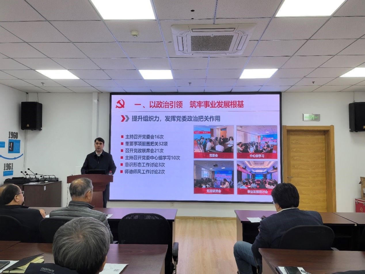 党委书记东明代表学院党委进行了工作述职,从以政治引领筑牢事业发展根基和强组织聚力提升基层党建质效的举措和成效,总结了学院党委履行基层党建工作责任和落实“一融双高”建设等方面工作。